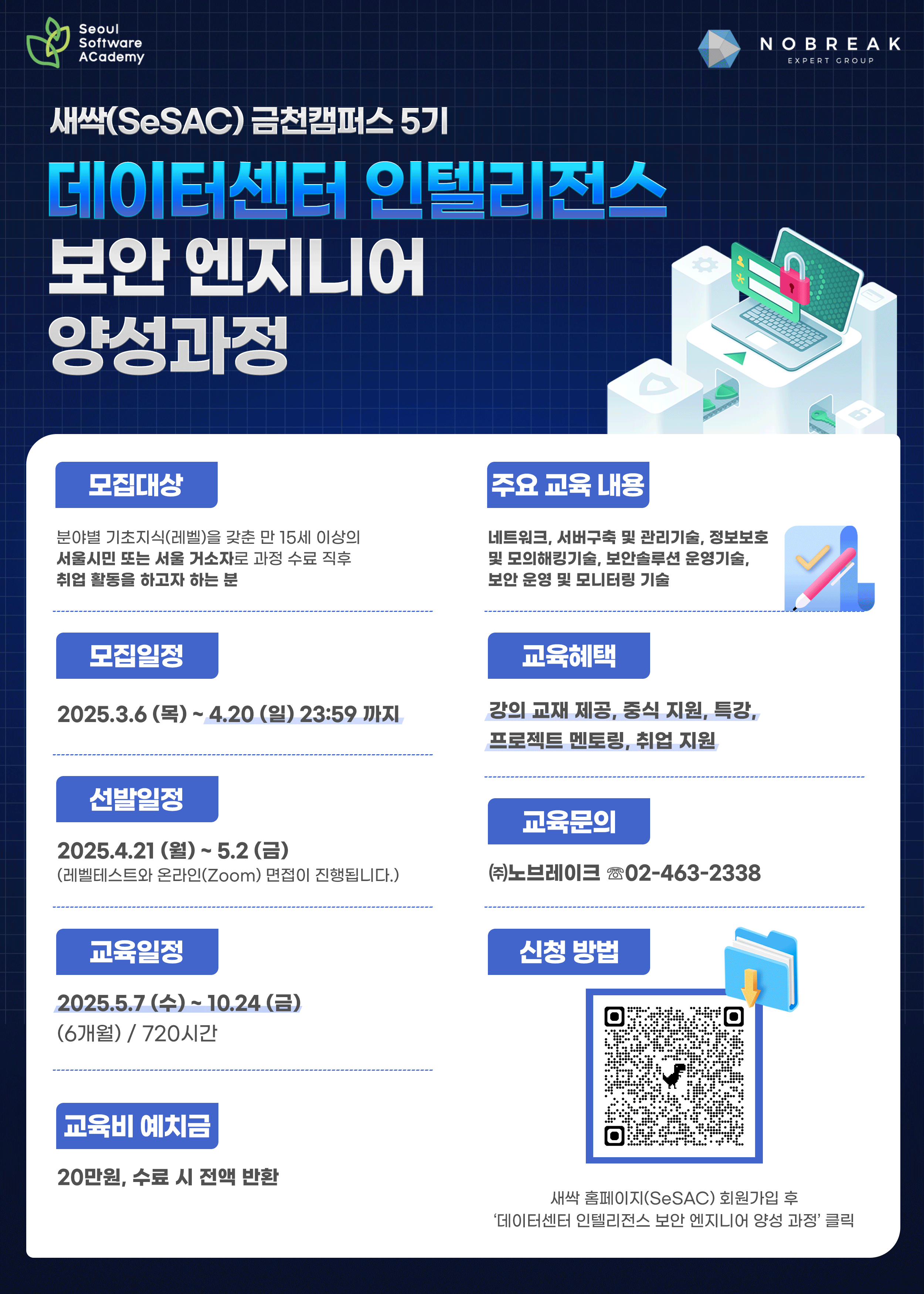 - [청년취업사관학교] <데이터센터 인텔리전스 보안 엔지니어 양성 과정> 교육생 모집