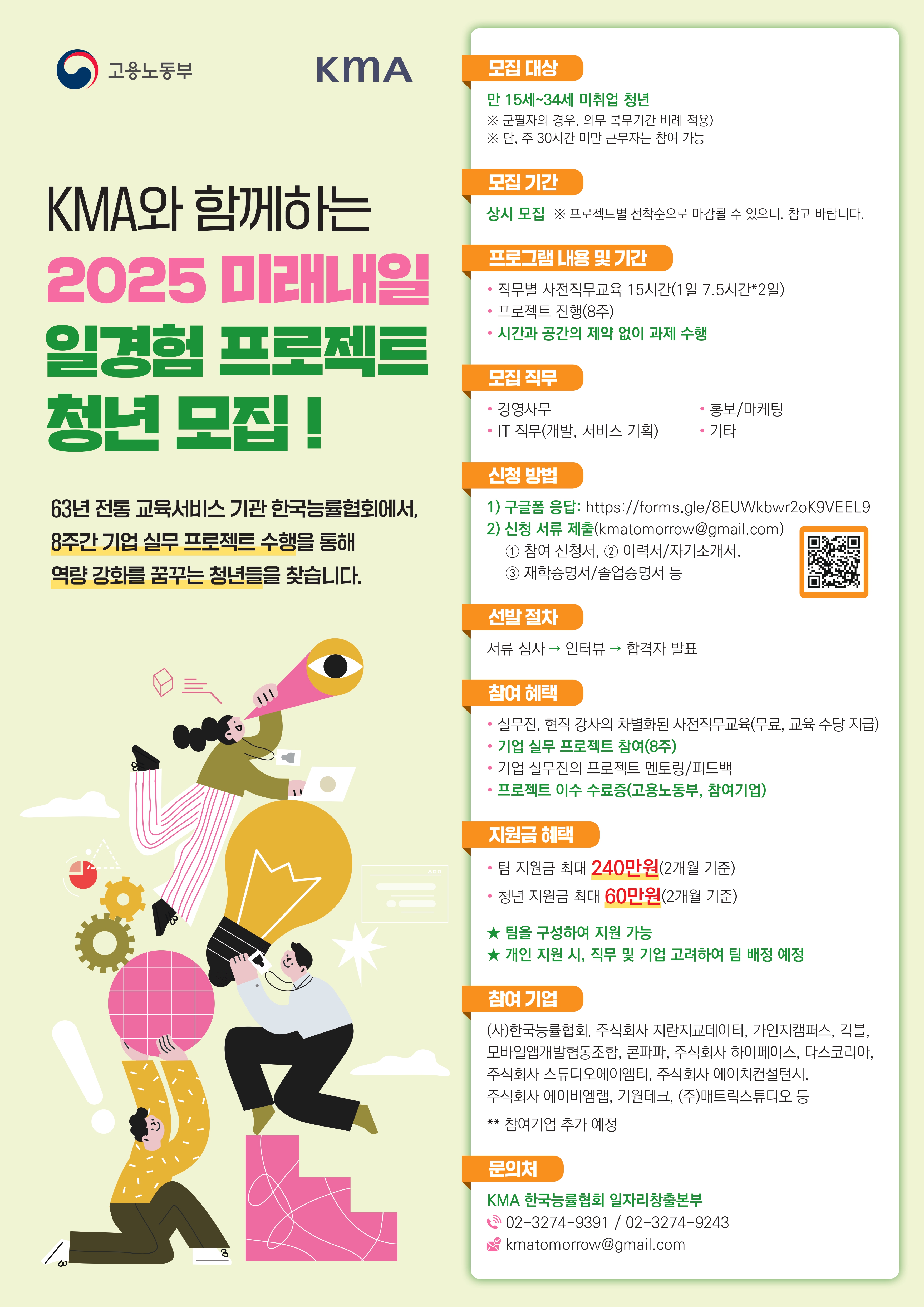 - [한국능률협회] 2025 미래내일 일경험 프로젝트 청년 모집