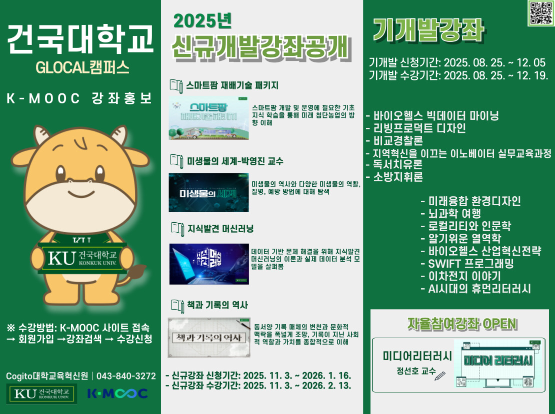 건국대학교 GLOCAL(글로컬)캠퍼스 2025년 2학기 K-MOOC 강좌 수강 안내