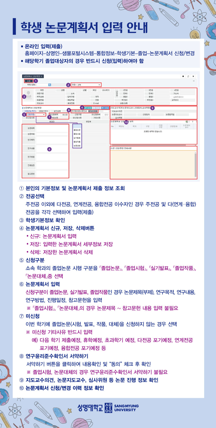 예정 등)로 졸업작품(논문) 계획서를 미신청 할 경우에도 반드시 미신청 처리(입력)’를 해야 함